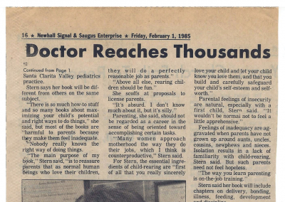 Dr. Stern received her medical degree from the Pritzker School of Medicine at the University of Chicago. After medical school, she became a resident at UCLA where she was approached by a veteran physician who encouraged her to go to Newhall after her residency. “A man who was a pediatric neurologist came up to me and said ’there’s someone in Newhall who needs help’ and I thought to myself, ‘where is Newhall?’, no one knew about it at that time, and Valencia didn’t even exist. When I first arrived here I thought, I’ll do it for a year”. Coming from the windy city, she wanted to be in a place where she could escape winter and sky scrapers, where everything was within walking distance; she came to onion fields, carrot crops, and mule farms. This place would be her professional home for the next 47 years that she fondly enjoyed.