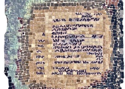 Naomi’s passion for mosaics connects her to an ancient form of art. “Mosaic is my new passion; it connects me to an ancient form of art that’s been done for thousands of years, making an image from broken stones or tiles. Israel has its share of ancient mosaic floors of synagogues. During my travels in Jerusalem, Barcelona, Athens, and Rome, I’ve seen beautiful mosaics that inspired me.” One of her standout pieces is a mosaic that appears as if it were excavated from ancient Jerusalem. “I also wrote on a tile, in Hebrew calligraphy, the prayer of the Shema—the most important prayer in Judaism. As a Hebrew teacher, I like to showcase a little from the Jewish traditions.”
