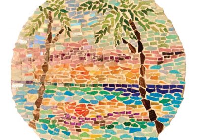 Naomi reflects on her artistic journey: “I didn’t know that I could do art until I tried as an adult. I never had any art supplies or lessons as a child, and now the child in me is making up for lost time.” This self-taught, multifaceted artist finds joy in exploring different mediums. She explains, “When I paint in acrylics, I miss the texture of oil; when I paint in oil, I miss the softness of watercolor. In between, I use pastels, alcohol ink, and a lot of mosaic. That’s the ADD in me that’s pulling me in every direction. I feel that exploring all mediums only adds interest to my day. This is a dream exhibit to show off so many mediums on a variety of surfaces.”