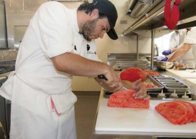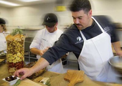 Working closely with the culinary department is Michelle Razzano, Chair of the Hotel & Restaurant Management Department. Razzano ensures that students receive the essential operational and leadership training needed to thrive in hospitality careers. Her focus on service, management, and the business side of the industry rounds out the program and helps students become well-prepared professionals capable of leading in kitchens, hotels, bakeries, and dining rooms. Together, Schwanke, Otto, and Razzano form a leadership trio committed to student growth, industry partnership, and program excellence.