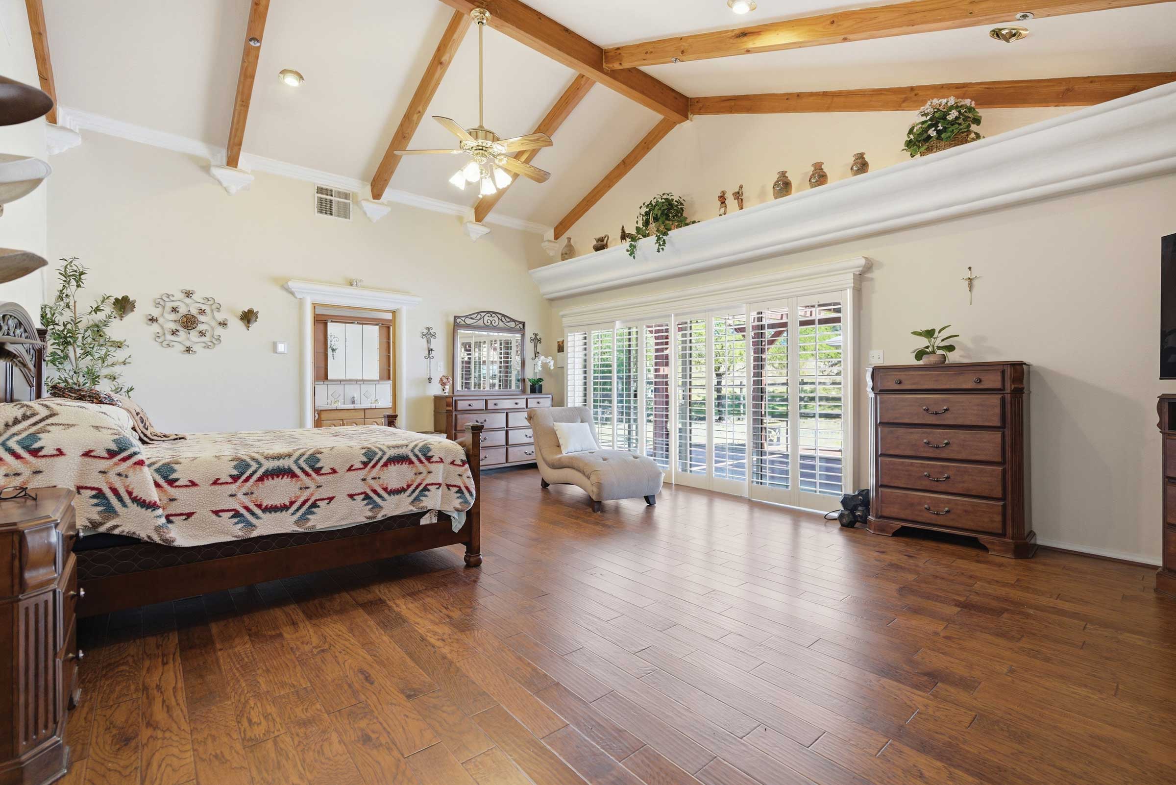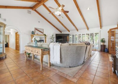 Inside, the home features five bedrooms and four bathrooms, thoughtfully arranged within a spacious and functional layout. High vaulted ceilings elevate the interior, creating an open, airy environment filled with natural light. The flow of the home makes it ideal for both everyday living and entertaining, offering flexibility for a variety of lifestyles.