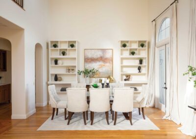 Tucked behind the guard gates of The Woodlands, this elegant residence unfolds as a serene retreat where thoughtful design meets everyday comfort. From the moment one enters through the private courtyard, there is a sense of calm and intentionality that carries throughout the home.