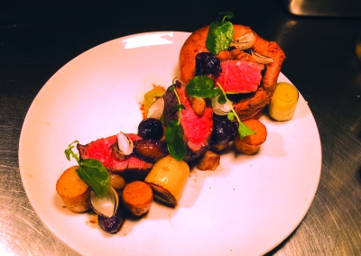 beets, blueberries, goat mousse, winter greens, quinoa, blueberry poppy vinaigrette