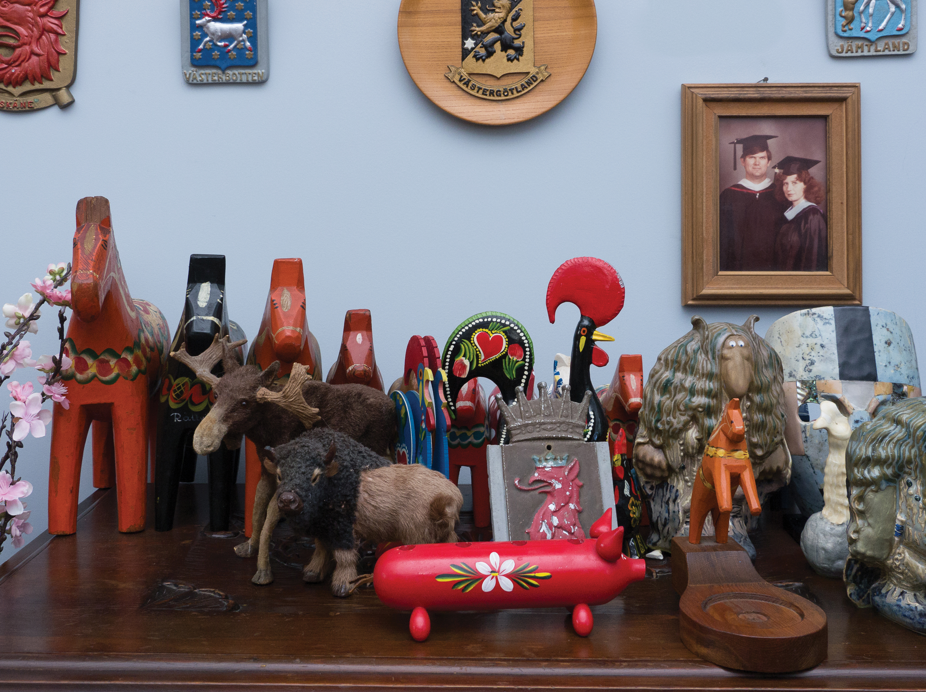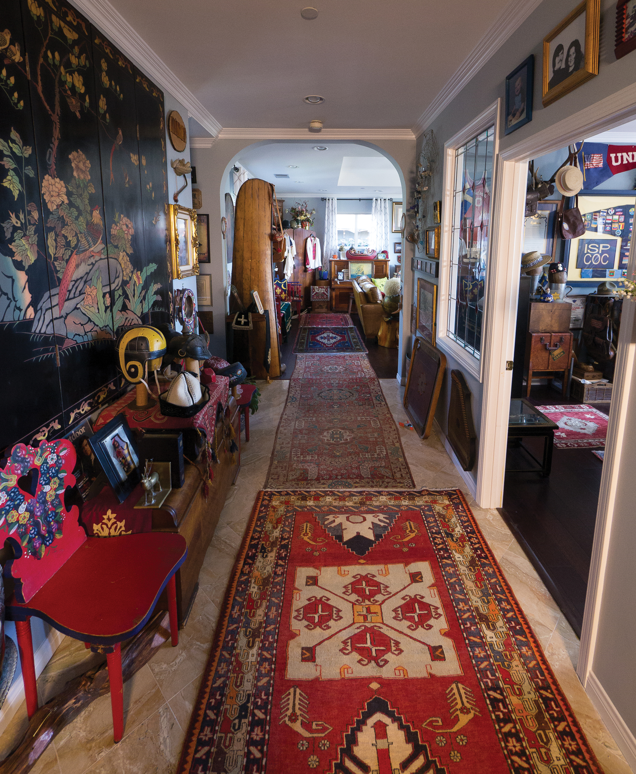 The Pelkey home feels more like a museum than the house of school teachers. Rugs from Turkey and Uzbekistan line the floors. Art from Japan, Sweden, Hungary, and countless other countries adorn the walls. The experience of walking through their hallways is almost overwhelming with stimuli. Every inch is covered in mementos from their travels, with each piece containing its own personal and historical significance.