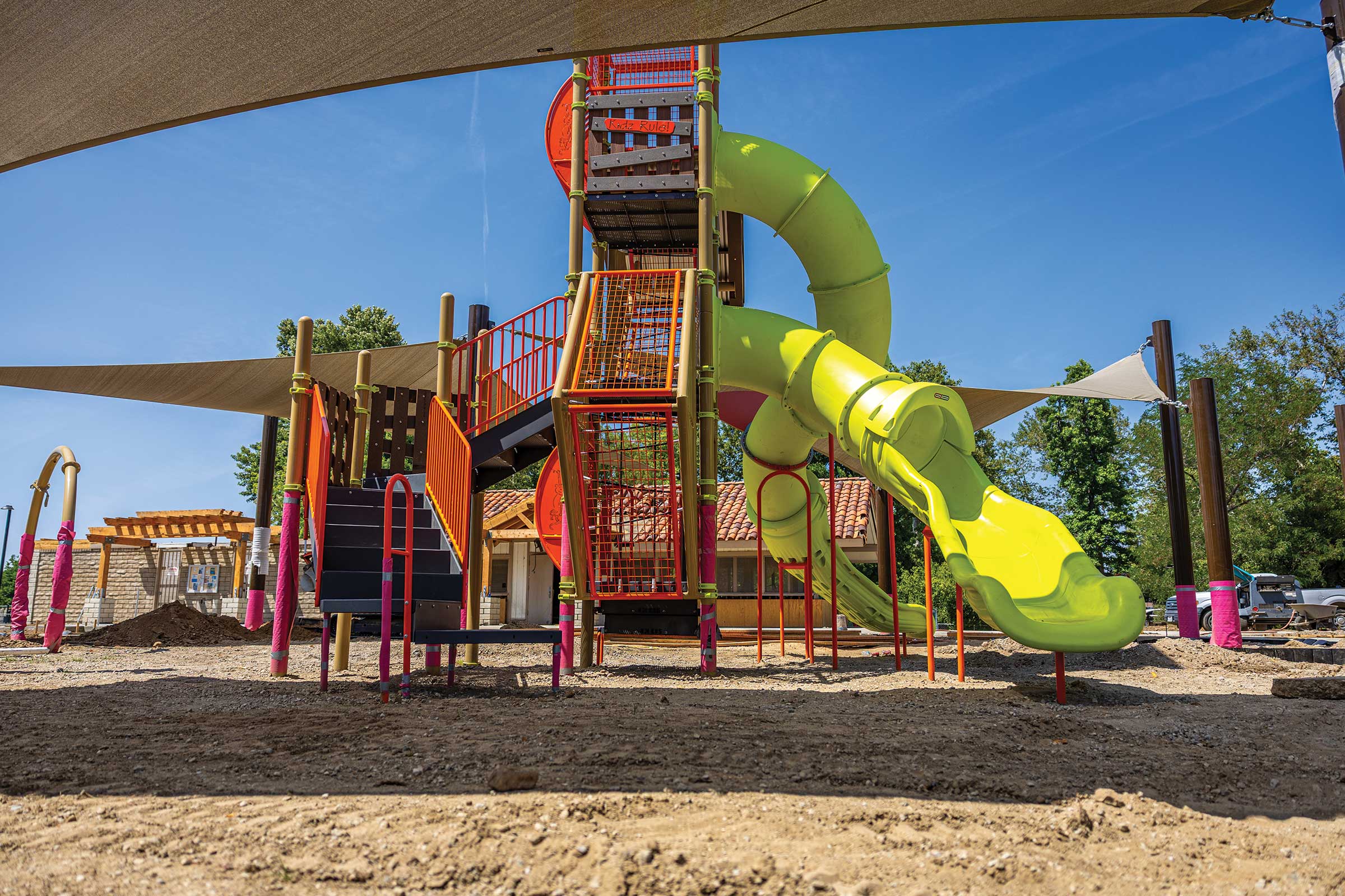 Old Orchard Park is preparing to welcome residents back after a complete transformation. One of Santa Clarita’s original parks, Old Orchard has been reimagined to serve today’s families with an emphasis on play, inclusivity and active recreation. The redesigned playground now features a climbing wall, rope ladder, slide and turf mound for imaginative play, all shaded for year-round comfort. A new ADA-compliant restroom also ensures accessibility for every visitor. For sports lovers, the basketball court has been re-striped to accommodate pickleball, and a new multi-sport court invites games of basketball or futsal. Adding to the park’s renewed character is a striking public art piece, The Dream of the Golden Oak, a glowing glass mosaic sculpture, inspired by Santa Clarita’s history.