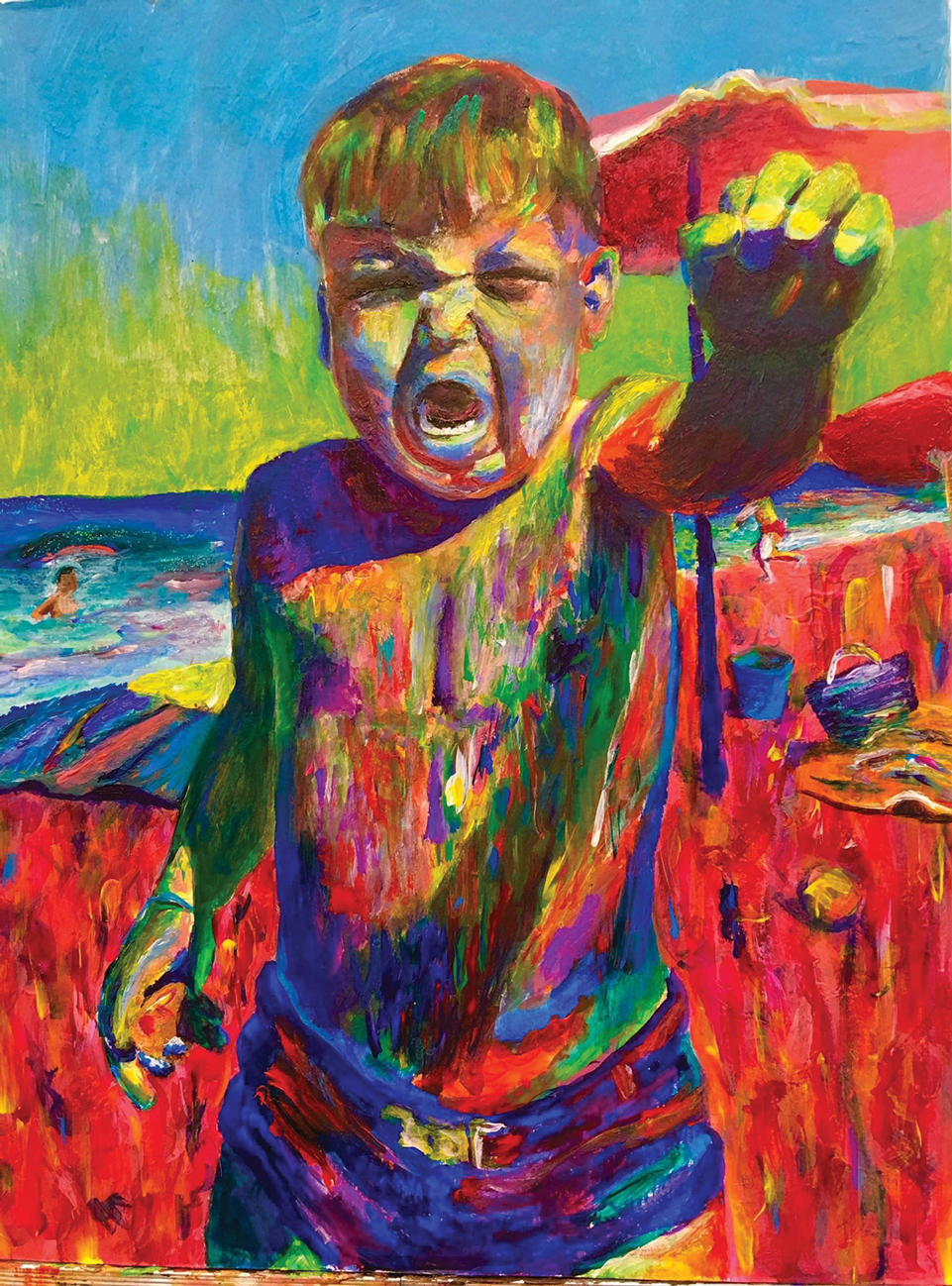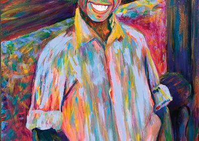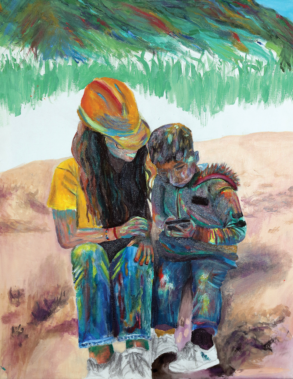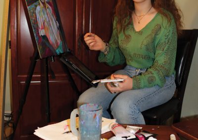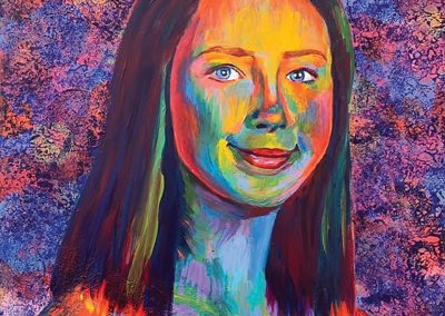 Like most of Kiki’s art, her artistic approach stems from memories from her daily life. “When I started painting in the expressionist style, I used to take old photos and recreate them, I remember one of my first drawings was of me and this kid when I visited South America.” In her art space, you find carefully made pieces in spirited colors that in the nature of an artist, she feels her work is never finished until it feels right. “When I was working on Dominic, I did not like how it turned out at first, but I kept playing with more colors and it turned out better. I want to make sure any of my projects are worth giving to someone.” Although she did not know the students, she felt personally connected to each one, and to commemorate their life she recreates old photos of them onto a blank canvas.
