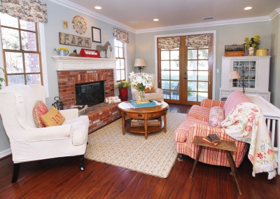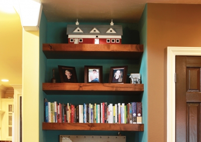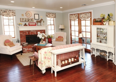 Collections are a staple throughout this beautiful home, but without the eyesore of clutter. Whether it’s an assortment of old family pictures, antique medicine bottles, or vintage children’s books, there’s a decorative element with a story to it around every corner. Eclectic heirloom accents, like a crafted jewelry tree and a jar of rosette pastry irons passed down from Lori’s ancestors, appear in each room. These pieces are tastefully displayed and seamlessly integrated into the design of the home.