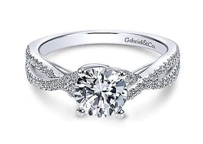 1. This gorgeous round diamond engagement ring combines the best of elegance and simplicity. With the ability to customize the diamond size to cater to your particular tastes, this effortlessly luxurious ring is ideal for those who want all the beauty of a bright diamond without the added embellishment of a halo or more-defined emerald or pear diamond shape. There’s no way to go wrong with this classic take on an old favorite.