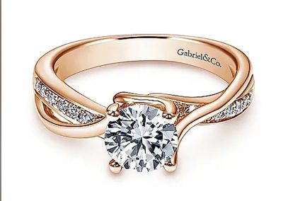 4. Who says simplicity and luxury don’t mix? With a beautiful rose gold band and a round-cut diamond, this ring is downright gorgeous, and is ideal for those searching for a ring that brings together the best of beauty and grace. A unique halo accentuates the ring in all of its exquisiteness, and its straightforward adornment makes it perfect for those who want all the beauty of an ornate engagement ring without the extravagant additions.