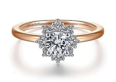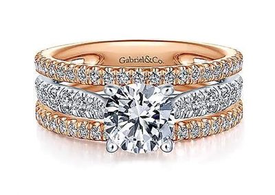 6. This ring has a combination of rose gold and white gold bands. Alongside the elegant, yet natural glamour of the round-cut diamond, flaunted by the high-profile mount that brings it to the center of attention. While it is true that beauty is in the eye of the beholder, every onlooker will be left awestruck by this ring’s blend of extravagance and artful ornamentation.