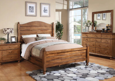 Consumers Furniture has a lots to choose from. This here is the Quails Run Acacia 2 Finish. The whole bedroom set is available to purchase.