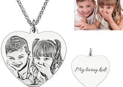 Heart necklace – A photo captures a moment forever, and with our Heart-Shaped Engraved Photo Necklace, you can wear the photo every day. Engraved photo necklace – Personalize your heart charm with an engraved photo of your fondest memory and any words you want to express at the back of the pendant.