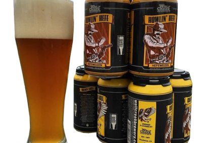 We sell cans of Howlin’ Hefe. Available at the brewery, restaurant and fine liquor stores around town.