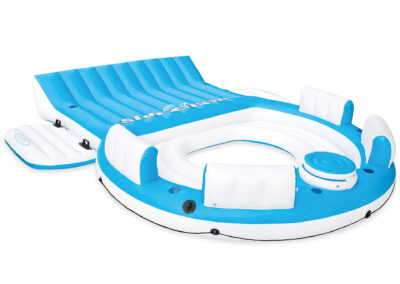 The relaxation island lounge 6-person raft is an inflatable water raft that can seat you and 5 of your friends for a great day out on the lake. Grab 6 friends and hop aboard the inflatable relaxation island raft for a great day out on the lake. There are 6 cup holders and a built-in cooler to keep drinks on hand for everyone.