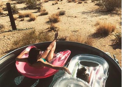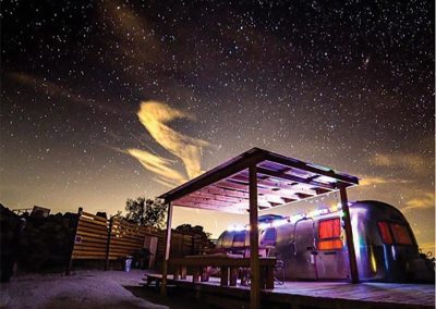 When you want to escape from the hustle and bustle of daily life come to a place where it seems time has stopped and all your worries just fade away. Located off the beaten path in the heart of the desert is a little slice of heaven known as the Land Yacht. The Land Yacht is a classic 31-foot Airstream “Land Yacht” travel trailer, that has been converted into a fully functional Glamping unit. The Land Yacht has its own private deck built alongside it, with a super refreshing stock tank pool, and is situated at the base of large boulder formations. We are right on the boundary of the National Park with stunning views. This one bedroom, one bathroom airstream is just what the doctor ordered to get some piece of mind and that much needed rest and relaxation. Sun bathe in the desert sun during the day and get nice and warm inside the cozy seating areas inside the camper. Whether with your “bae” or your best friends this RV can accommodate up to four guest on any given visit and is sure to leave you with amazing memories to last a lifetime.