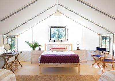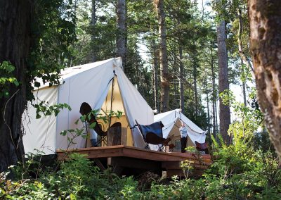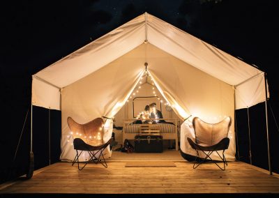 Mendocino Grove is a modern camping experience on Northern California’s picturesque Mendocino Coast. With breathtaking natural beauty all around, visitors can enjoy a tranquil and authentic camping experience with comfortable sleeping arrangements and an array of deluxe amenities. Combining an immersion in the sights and sounds of nature with luxurious and modern comforts, guests of Mendocino Grove can enjoy the experience of camping without the hassle of camp gear or the discomfort of sleeping on the ground. Encompassing 37 acres, Mendocino Grove boasts 60 spacious Safari-style Classic and Family tents, fully-outfitted with heated beds, warm down comforters, wool blankets, crisp cotton linens, lanterns, electrical outlets, and more. Each tent is housed on a wooden platform with a redwood deck furnished with leather butterfly-chairs, an ideal setting for relaxing and enjoying the beauty of the surrounding forest. Additionally, each campsite includes a picnic table and fire ring ideal for intimate fireside storytelling, cooking, and warmth during the cool mornings and evenings.