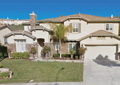 This 6 bedroom home has the lot size and improvements to check all the boxes for any discriminating buyer. Exceptional paver stone hardscape, front and back. Double patio cover over the outdoor kitchen with multiple cook stations and extra oversized sink. Pebble tech pool/spa with outdoor shower and putting green. A true entertainers yard with no rear neighbors and views of the hills. Wow! Inside offers full bed/attached bath plus another half bath down. 5 more bedrooms and laundry up with gorgeous wood floors throughout. Magnificent kitchen with huge granite island, GE Monogram stainless appliances and a walk-in pantry. So many unique touches – custom entry lighting, barn doors to create privacy, upgraded doors on each bedroom, shutters and crown molding up & down and iron staircase. 3-car split garage with epoxy floors, all clean as a whistle. The list goes on and on with smart technology, a tankless water heater and the solar system covering the electric bills. All colors and finishes are neutral and fit the theme of a model perfect home.
