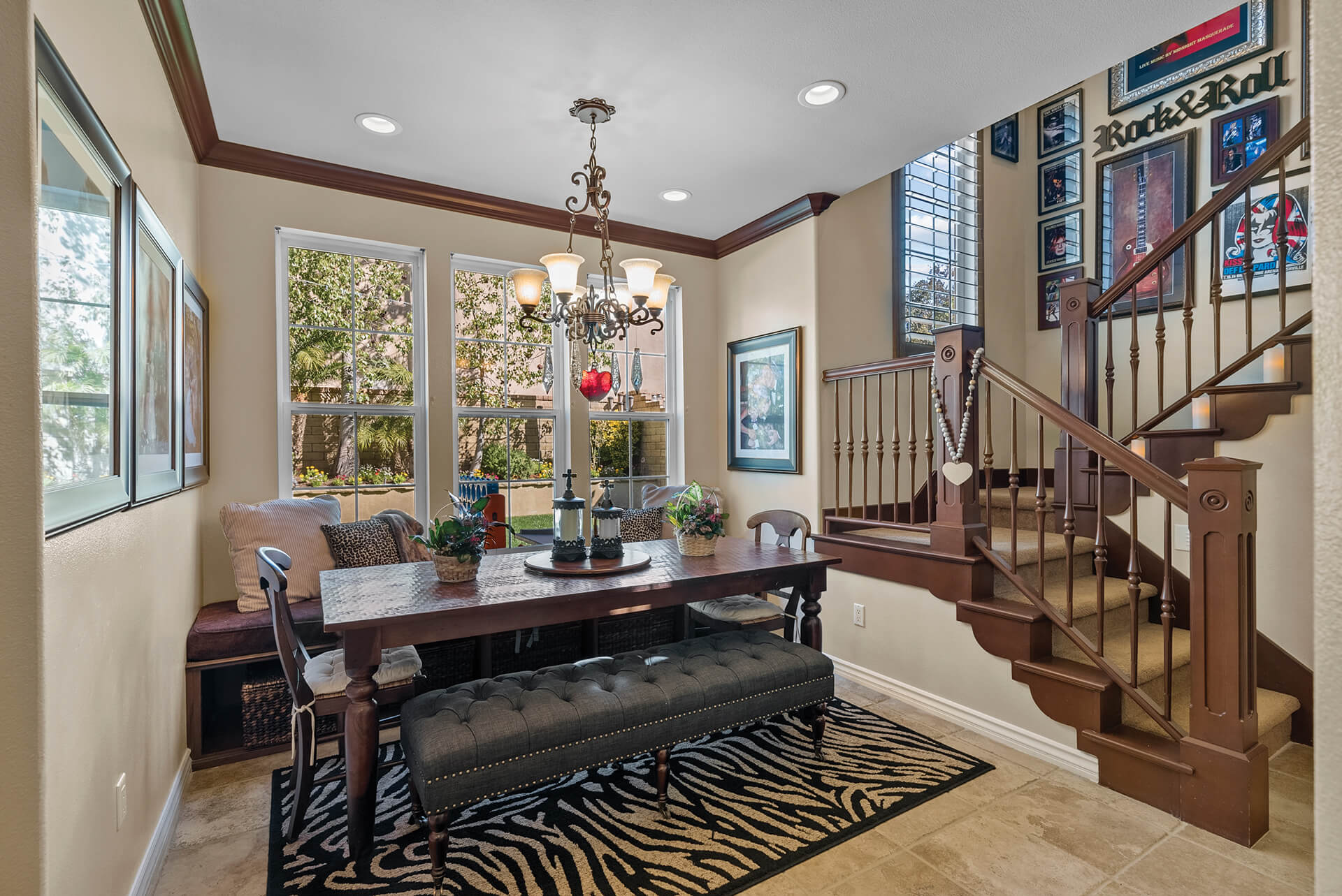 Just beyond the kitchen, you’ll find a spacious breakfast nook with built-in seating and three large windows bathing the room with light.