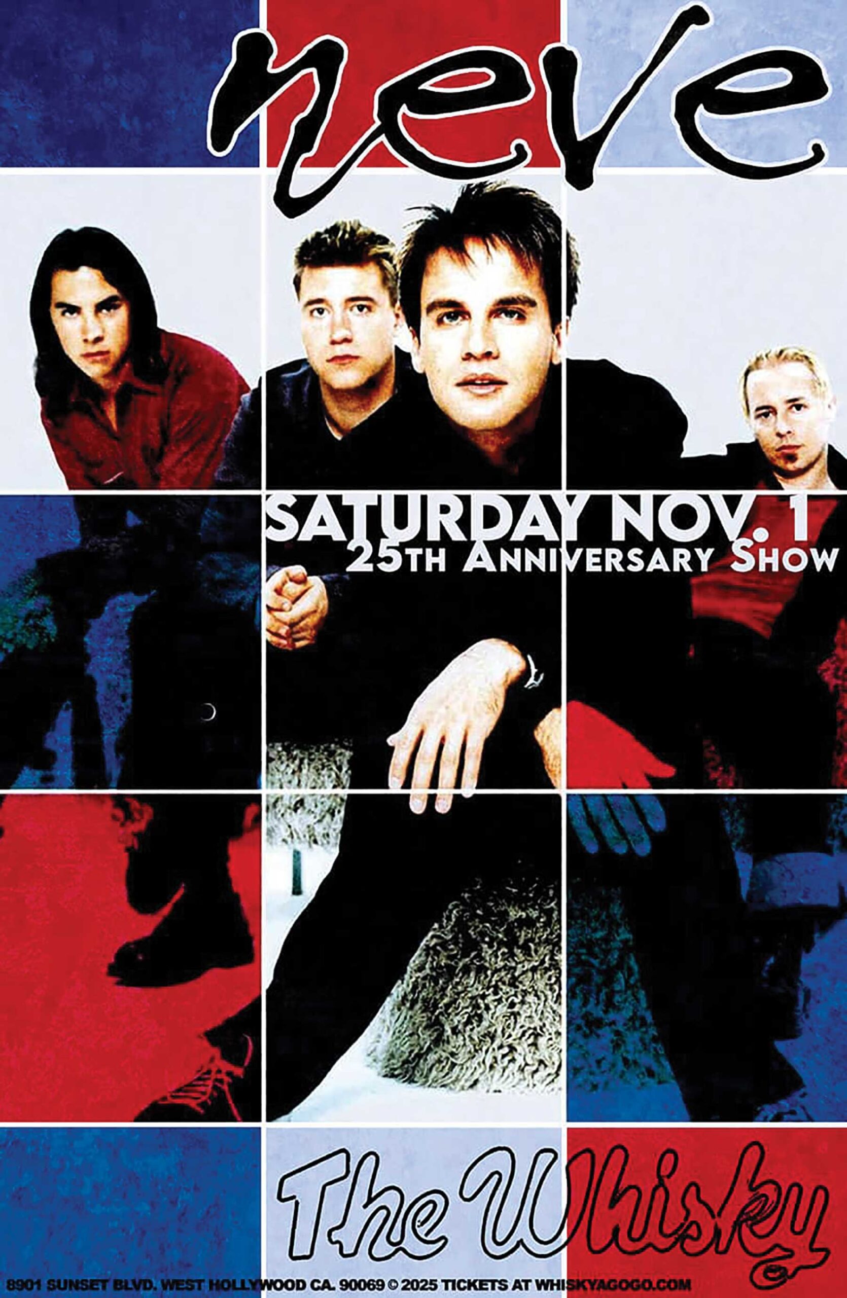 As we journey back to the year 2000, there’s one band that captured the spirit of the era with unforgettable melodies, powerful lyrics, and a sound that still resonates today—NEVE. Known for their emotional depth and raw energy, NEVE’s music helped define a moment in time for rock fans across the globe. Now, 25 years after the release of their debut album, the band is making an exciting return with a special anniversary concert at the iconic Whisky a Go Go in Los Angeles on November 1, 2025.