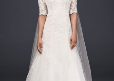 A lasting favorite among bridal attire is the 3/4 sleeve dress. Whether you opt for transparent or opaque fabric, the 3/4 sleeve is the perfect way to combine the sensibility of modesty and the freedom of movement within your dream dress, and can be added to a sweetheart neckline or straight-across neckline to add a little embellishment to the piece overall. This style received a boost in popularity after the newest Duchess of Sussex, Meghan Markle, opted for the classic ¾ sleeve style in her own wedding in May of last year.