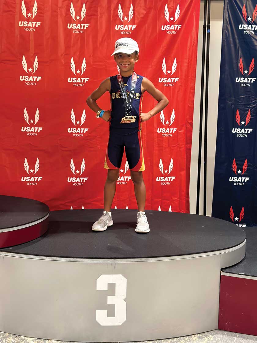 The pinnacle of Avery’s season came at the USA Track & Field Junior Olympics at Texas A&M University. Among nearly 8,000 athletes aged 7 to 18, Avery stood out, achieving All-American status. His remarkable performance culminated in a bronze medal in the Boys’ 7-8 Long Jump, making him the sole seven-year-old to reach the event’s finals.