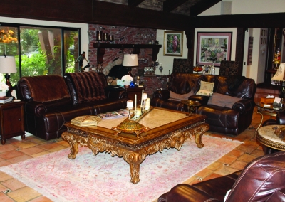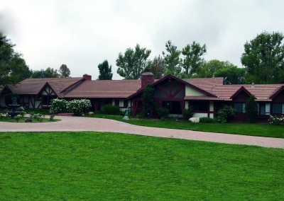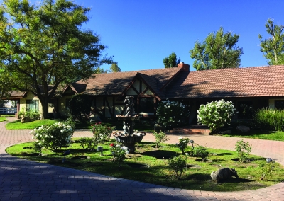 Some say, “home is not a place–it’s a feeling” and this Bill Cloyd Sr. original is sure to incite much feeling. Siting on 2.5 acres this Sand Canyon home is a picturesque estate to raise a family. With 5 bedrooms, 6.5 bathrooms any family will feel right at home with enough space for everyone. The exterior of the house has a European style complete with a barn and corral. The front consists of lush green fields accented with roses and a brick driveway.