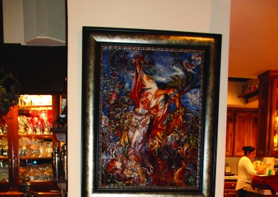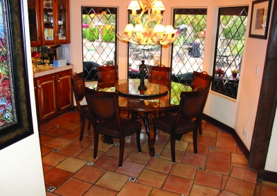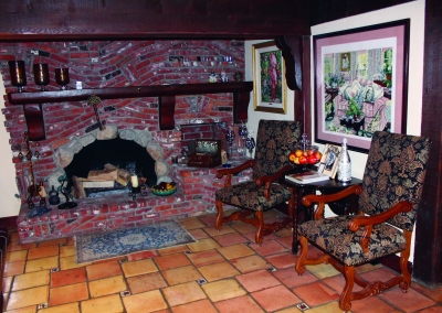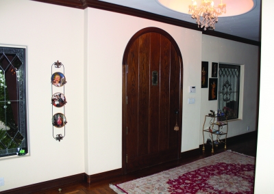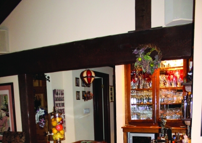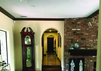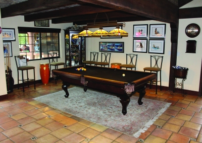 Take a few steps down into the great room with an open floor plan this room can be used for anything: a living space, office, pool/game room. The tremendous area allows good lighting and contains vaulted ceilings, a brock fire place and French doors that lead to the driveway or backyard. This room also has a full bar with cabinetries for glassware and a wine fridge. Across from this is a concreted wall made perfect to fit several wine bottles.