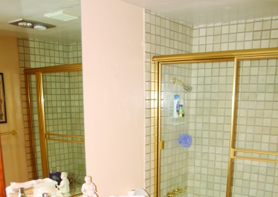 The second master suite has enough room for a living space and a bedroom. The room has two walk in closets and fitted with smoky-grey porcelain flooring made to look like hard wood. The large windows let in the afternoon sun and the French doors leading outside to a private gigantic patio allows for a breeze in the evening time. The bathroom is a ¾ bath with a bidet. The white tile is highlighted with gold fixtures. Not pictured