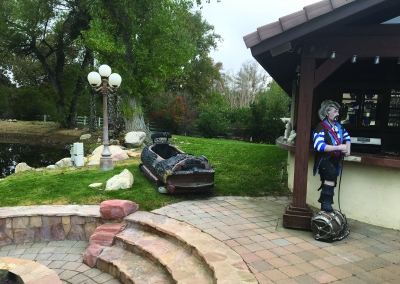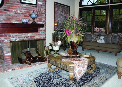 Take a stroll in the backyard and be transported to the English countryside equipped with rose gardens, rows of foliage and a lake with a dock. The back yard also contains a large swimming pool with a waterfall and a Jacuzzi. The backyard is made for entertaining. The brick pathway extends from the front entrance to the back of the house. This area with a full outdoor kitchen and bar makes it the best place for any occasion. Behind the bar is the 3-car garage with built in cabinets and attic space.