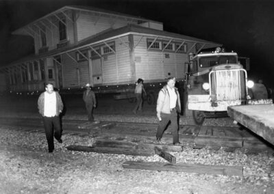 One of the first things they did was ask Standard Oil to support making Mentryville (the birthplace of the oil industry) a historic landmark. Their efforts were successful and a year later, the state landmark plaque for Mentryville was in production. Less than a month after that, Jerry Reynolds, who was then president of the Society, appealed to Southern Pacific Railroad to donate the endangered Saugus Train Station (located across the street from the Saugus Café). Patience had to prevail in that case, but the Society put the issue on the front page of people’s minds, so that one night in 1980, the station lumbered down then-San Fernando Road to its new home within Hart Park.