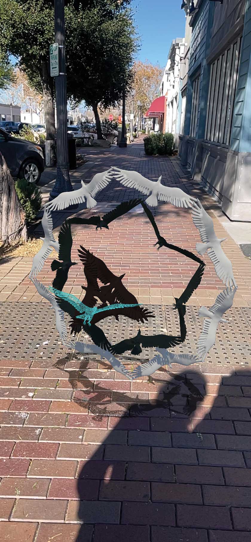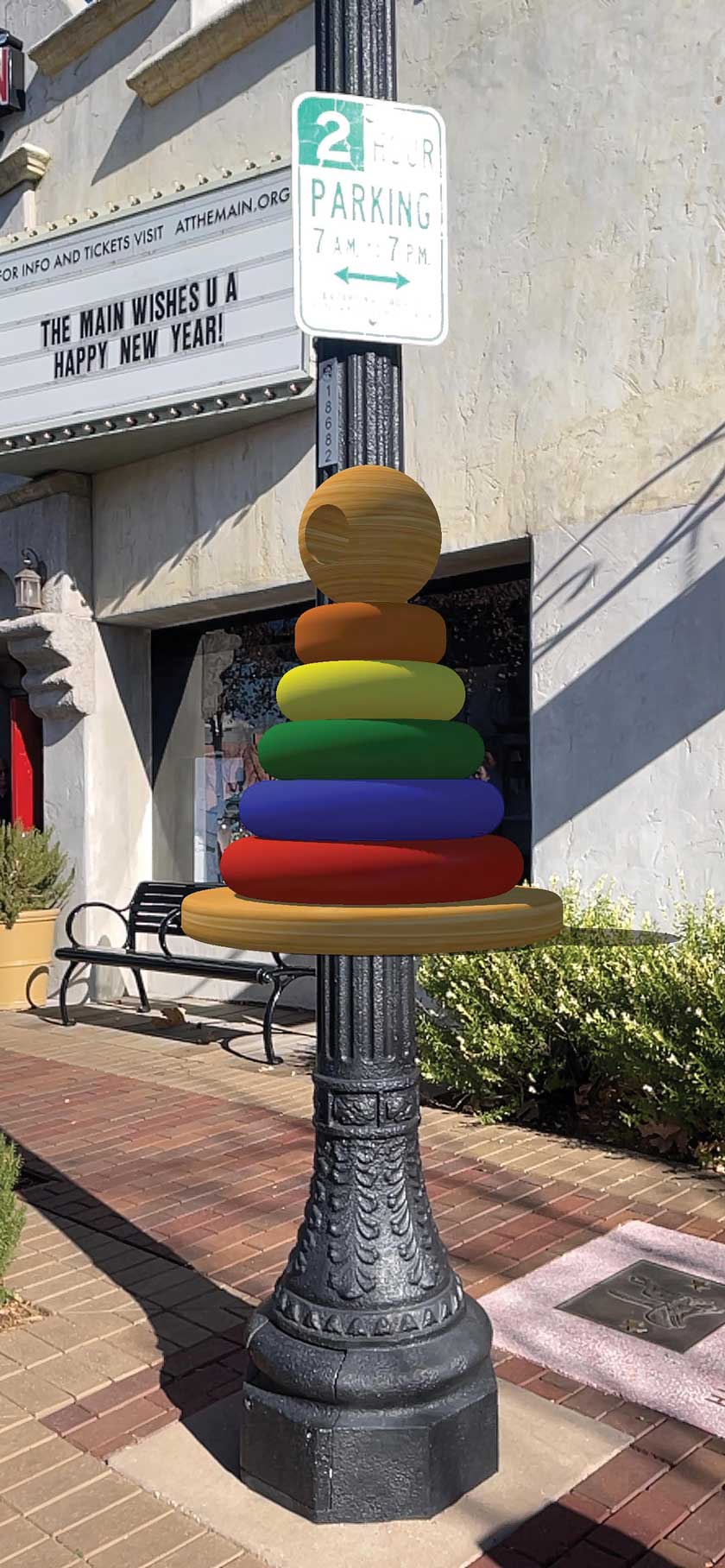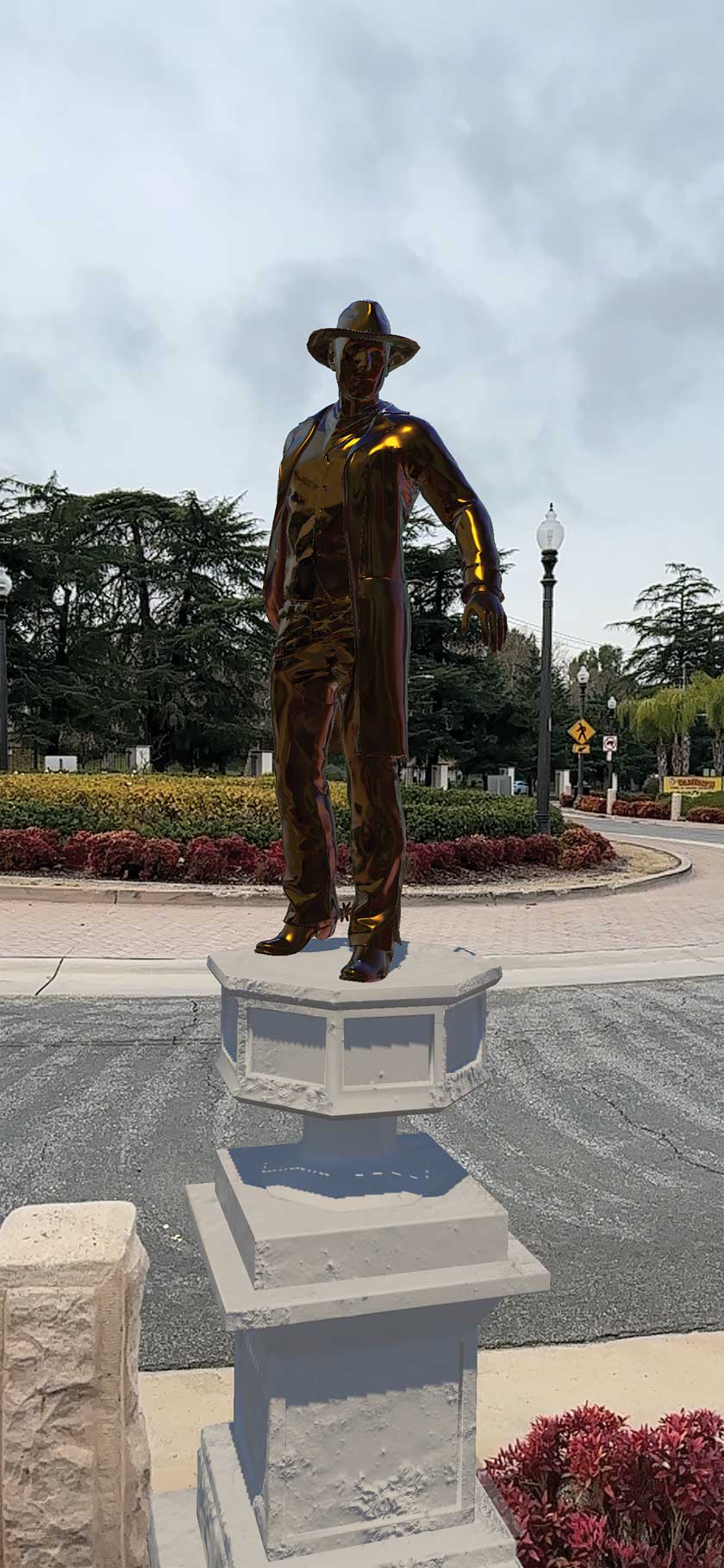 Artist Drake Arnold was invited to create a site-specific proposal that considered the connection to the historical elements of Old Town Newhall to tell stories and create a dialogue that represents the premiere Arts and Entertainment District. The proposal consists of a series of ten conceptual, digital art installations using augmented reality, in the forms of both virtual 3D and 2D. Some of the art pieces include a “William S. Hart Memorial Statue” and a “Dyson Sphere.” Sure to be popular with families and art lovers of all ages – the “Active Avocado” art piece encourages users to get moving. They can choose different stretches and exercises alongside this digital, avocado workout partner.