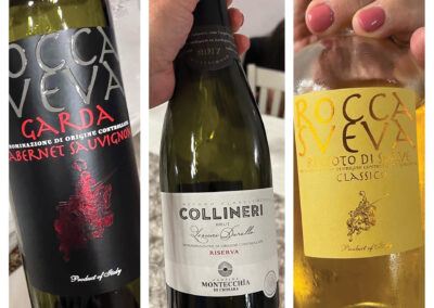 We enjoyed a lot of bubbles after the classes! The area is known for their sparkling wines – both white and Rosé. Pinot Grigio is also king in the Garda DOC. But I did get my hands on a few reds. I really enjoyed their Cabernet Sauvignon, Merlot and Cabernet Franc blends. The red blends were my favorites of the reds, as well as a few Merlot that were made in an Amarone style – with some of the grapes being dried. The whites were fresh and lively, while the reds were balanced with both spicy and sweet notes.