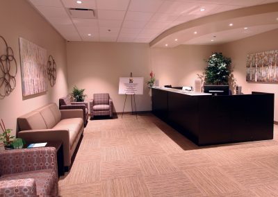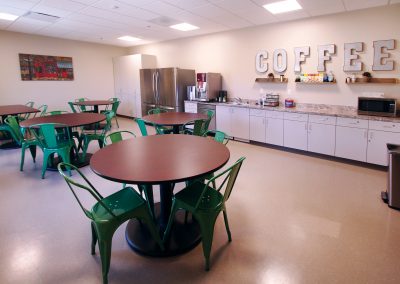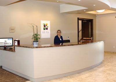 Walking in, your eye is drawn to the large donor wall that showcases all the people that helped create this amazing space. “We are so thankful to the community for giving their support,” says Jennifer DeHaven, Coordinator of Operations. From the waiting area to the office spaces you are met with a welcoming atmosphere-the rich earth tones accented with large windows that lead to an outdoor courtyard create a bright, open space for seniors, giving them a country club feel.