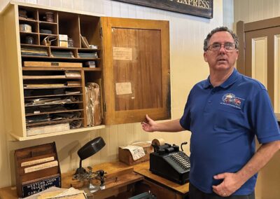 The difference between the “old” train station and today’s museum is authenticity and hyperlocalism. In preparing the station for visitors, it took a village. Historians like Jean-Guy Dubé made sure that Leon Worden used official Southern Pacific RR colors when he painted the station interior; retired SP engineer Michael Jarel examined each artifact to make sure it is true to the railroad line (later purchased by Union Pacific) that serviced the Santa Clarita Valley; Archivists Eva Gritz and Madison Traylor handle every item in our collection with proper preservation techniques; volunteers like Guy Horanberg, Tim Burkhart and Michael Owston fix and build things and Barbara Martinelli recruits and trains docents to share our history stories. We’re proud of our history-telling team.