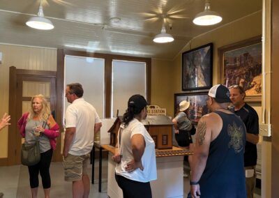 This is Phase 1 of the opening of the station; Phase 2 will feature an exhibit of the hospitality services offered to passengers by Southern Pacific, including items from the Pullman Porters and examples of the dishes and holloware used in the dining cars. Phase 3 centers around the freight room, which will be home to interactive exhibits such as a simulator that will mimic riding on a passenger train and other large-scale displays. This progress depends on the success of fundraising and getting grant money. You can help by making a donation when you visit!