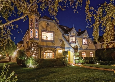 Exquisite is one way to describe the Victorian-style, single-family residence on Placerita Canyon Road in Newhall. It’s breathtaking before you even reach the front door of this inviting property. On the outside, the beautiful charmer features numerous, decorative windows surrounded with cobblestone at ground level, and unique dormers near the concrete tile roof. Giving the home a castle feel, a quaint turret— embellished with gorgeous stained glass— is even more impressive at nighttime. From the home’s double-door entry, you arrive in the tiled foyer which can take you to all rooms on the first level. To the right, a carpeted formal living room features recessed lighting and an ornate fireplace perfect for an intimate gathering. To the left, beautiful French doors welcome guests and a stunning chandelier lights the grand dining room. Freshly refinished red oak hardwood floors extend into the kitchen and breakfast nook.