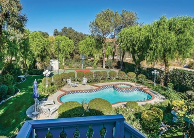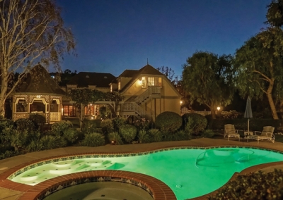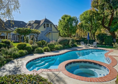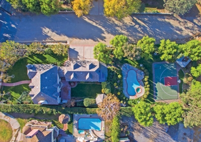Magnificent grounds envelop the nearly one-acre, flat corner lot, which includes meticulously pristine landscaping, an attractive brick patio with a charming gazebo, a recently resurfaced lighted basketball court, a storage shed, a refreshing swimming pool and spa, and a 4-car garage that is partially converted into a bonus room. Above the garage, there is a guest suite, complete with living room, kitchen, master bedroom and full bath. You will not only have an amazing home to entertain guests, but also a convenient and comfortable place for them to spend the night. In fact, they may not want to leave the approximate 800-square-foot unit!