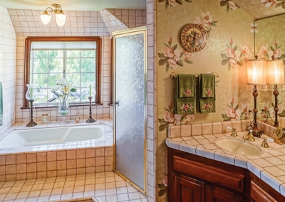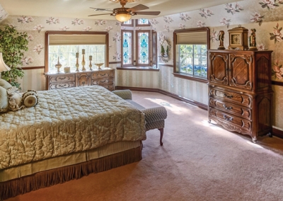 Victorian homes almost always have featured at least two levels, often three. Upstairs you’ll find four luxurious bedrooms, each with a ceiling fan, and two bathrooms. The spacious master suite offers a walk-in closet, dual vanity, separate shower, and jetted bathtub.
