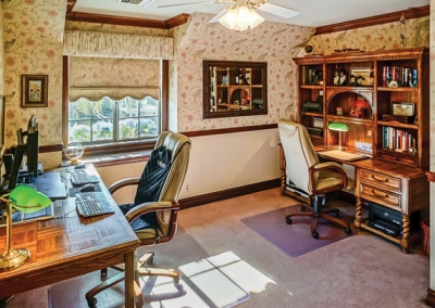 Victorian architecture refers to styles that emerged around 1830-1910 under the reign of England’s Queen Victoria. Typical of Victorian style, this home has an asymmetrical design, lending to its uniqueness. Ornate and decorative designs were the hallmark of Victorian homes, according to HomeAdvisor’s guide online. A mixture of materials and textures is also a strong Victorian theme. Walls with irregular shapes were common features of Victorian homes. These are all details that can be viewed in this Newhall home, built well beyond the actual Victoria era, in 1987.