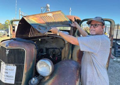 Donated to the SCV Historical Society by the Walker family of Placerita Canyon, the truck sat on blocks for a few months before an article appeared in the November 2022 issue of élite Magazine asking for donations of time and money. Members of the Santa Clarita Valley Corvette Club jumped at the chance to be involved with such a unique project. The irony of a bunch of Chevy enthusiasts working on an old Ford is put aside, as these guys have pooled their skills and passions for a good cause.