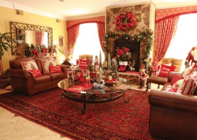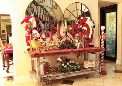 Nina del Valle of Superior Design is telling the Sandoval’s story of “What Christmas Means to Me,” using deep reds, silvers, golds and coppers in a traditional design with a Mediterranean Flair. Raul and Sandra Sandoval and their three children have called their Sand Canyon residence home for the last 18 years. The Sandoval family is delighted and honored to host this year’s Holiday Home Tour League. They hope you enjoy their family home as much as they do.