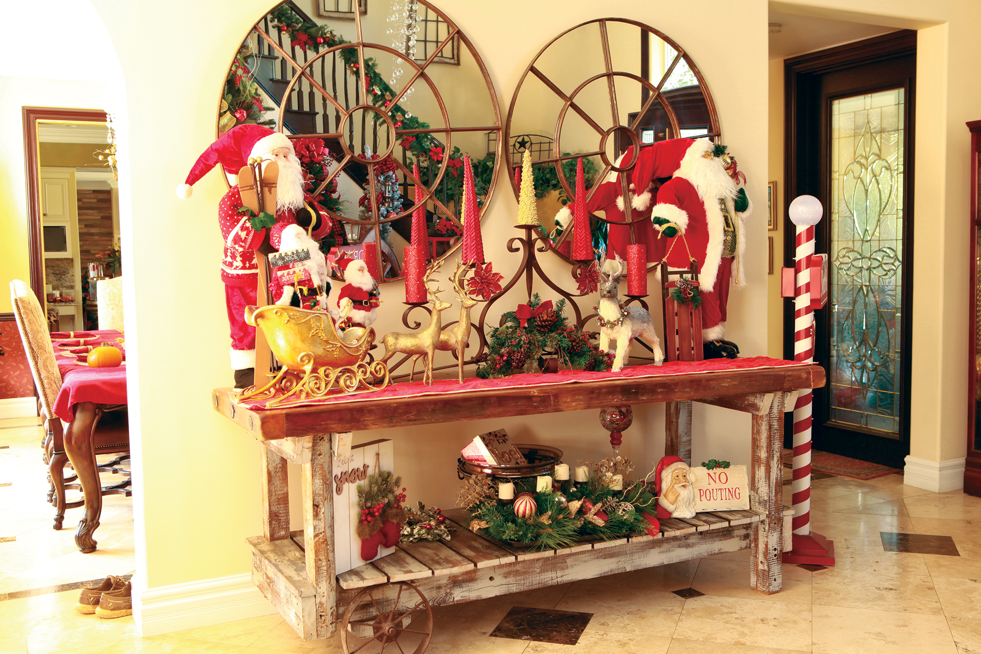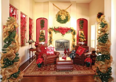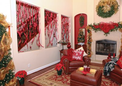Nina del Valle of Superior Design is telling the Sandoval’s story of “What Christmas Means to Me,” using deep reds, silvers, golds and coppers in a traditional design with a Mediterranean Flair.