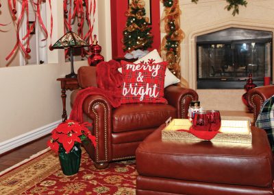 Bernard Underwood of An Intimate Place B.U. Designs is bringing “The Wonders of Christmas” to the Felkel/Raymond Family home, with a mix of traditional burgundy ribbons and gold ornaments and modern designs of wonderland white and sleek silver décor. Brian and Rebecca bought their dream home in Sand Canyon in 2013, and consider their home their sanctuary.