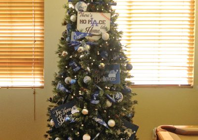Each of the homes will reflect the distinct character of the homeowners. Bernard Underwood of An Intimate Place B.U. Designs is bringing “The Wonders of Christmas” to the Felkel/Raymond Family home, with a mix of traditional burgundy ribbons and gold ornaments and modern designs of wonderland white and sleek silver décor, all showcasing the luxurious design of the holiday season.